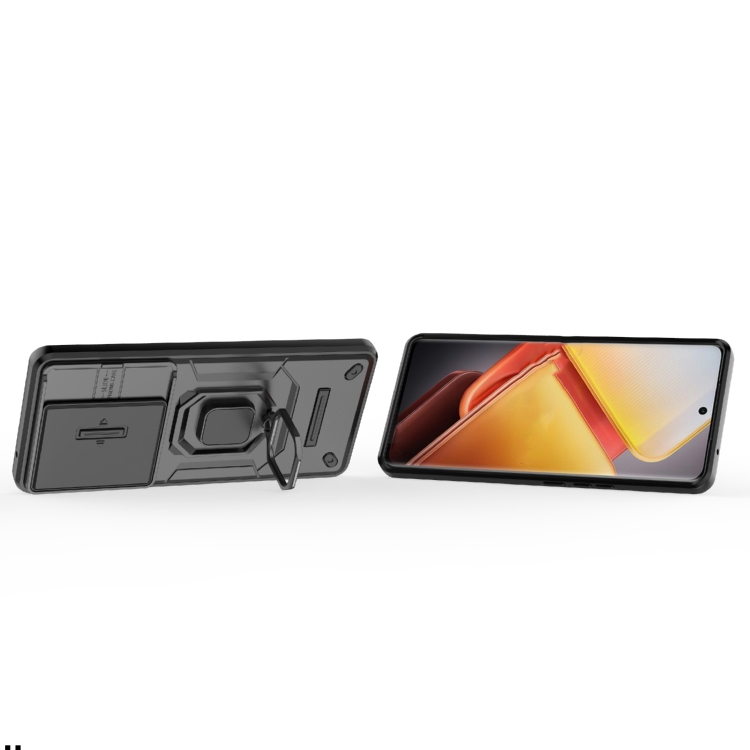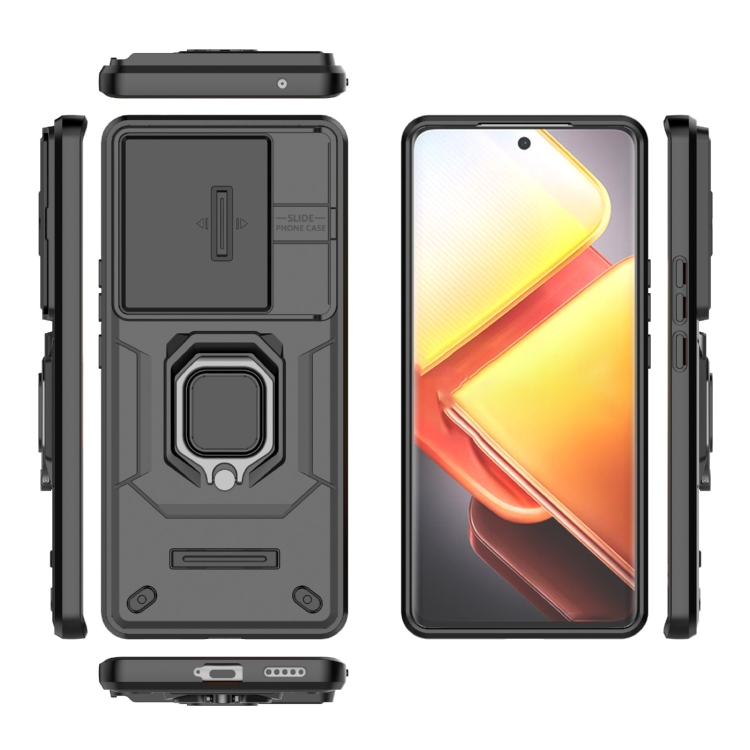 Funda Protectora de TPU + PC con Soporte para Vivo Iqoo Z9S Pro 5G, con Diseño Deslizante y Antigolpes (Negro)