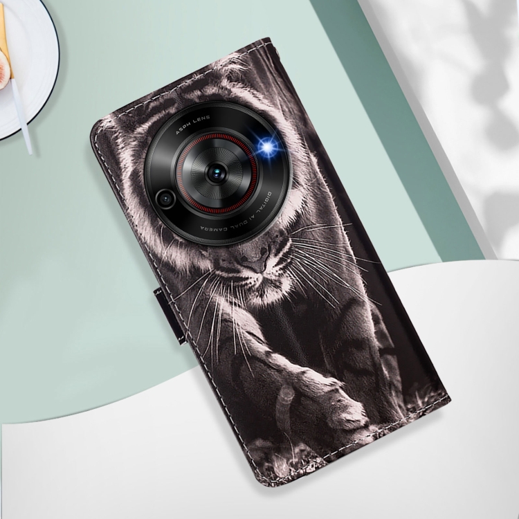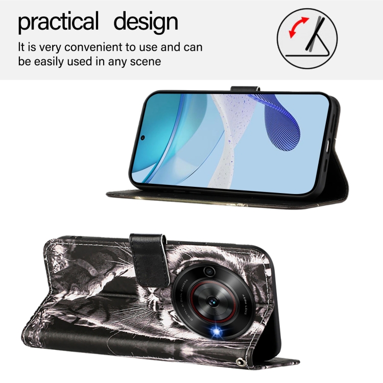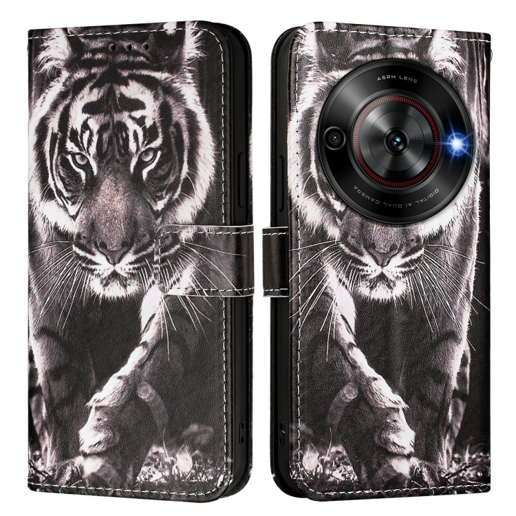 Funda de Cuero para ZTE Blade A75 5G y Nubia Focus con Patrón Tigre (Blanco y Negro)