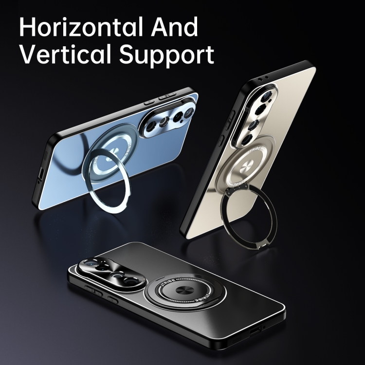 Funda de Teléfono de Metal Esmerilado con Soporte Giratorio para Vivo S19 Pro (Negro)