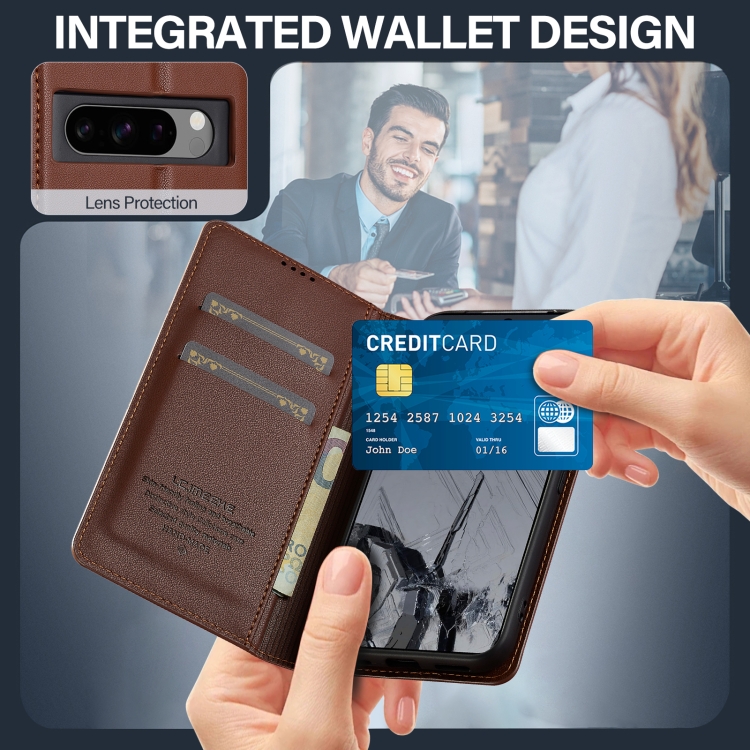 Funda de Teléfono PU Lc.Imeeke L1 Series para Google Pixel 8 Pro con Textura Esmerilada (Marrón)