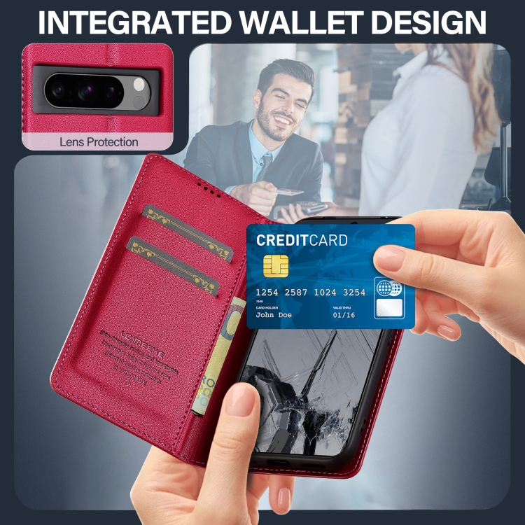 Funda de Teléfono PU Google Pixel 8 Pro Lc.Imeeke L1 Series Textura Esmerilada (Roja)