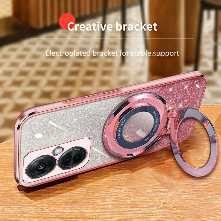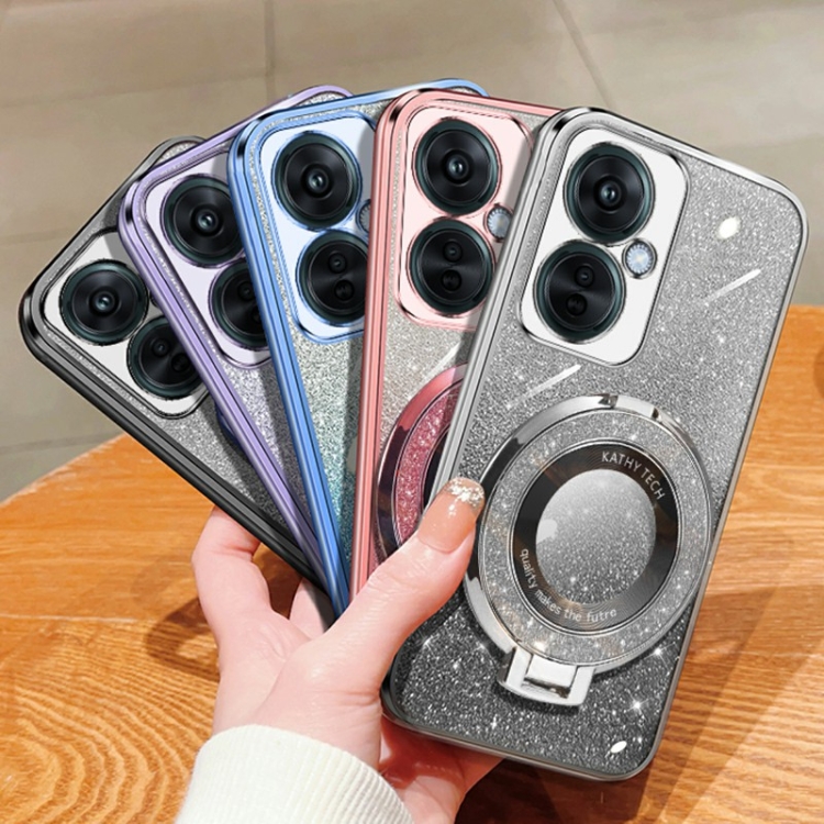 Funda de Teléfono de TPU con Soporte Redondo y Purpurina Degradada para Oppo K11X (Azul Sierra)