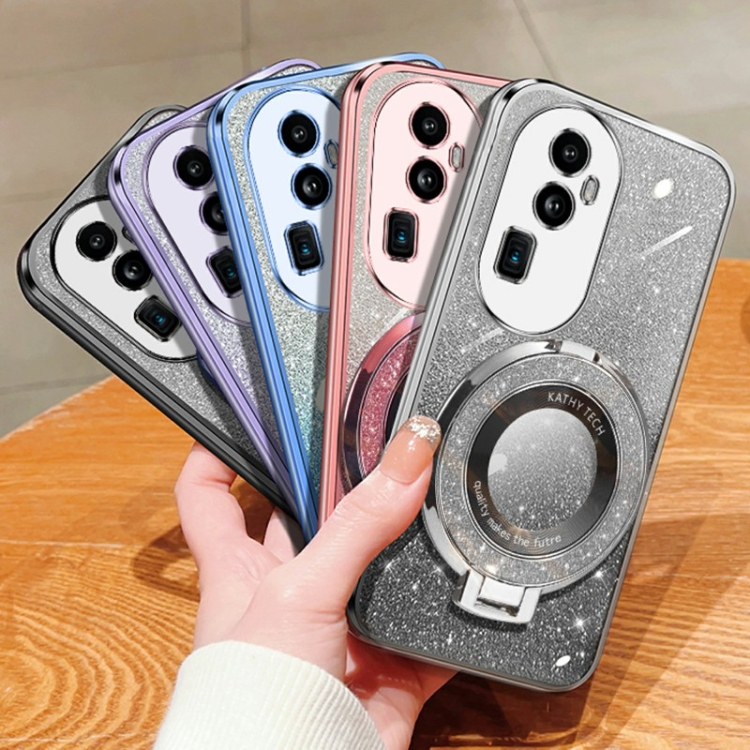 Funda de Teléfono de TPU con Soporte Redondo y Purpurina Degradada para Oppo Reno10 Pro+ (Rosa)