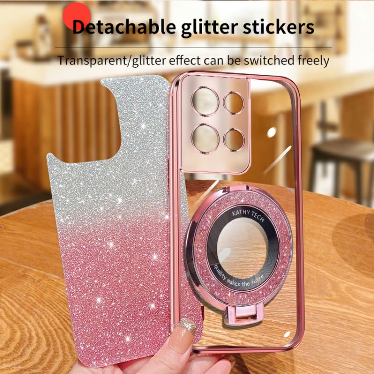 Funda de Teléfono de TPU con Soporte Redondo y Purpurina Degradada para Oppo Reno8 Pro (Azul Sierra)