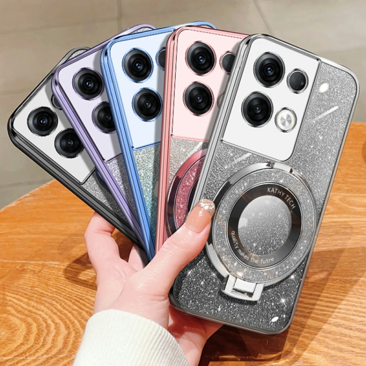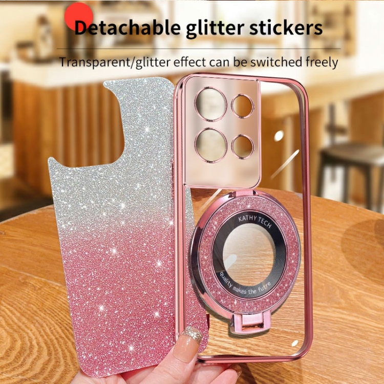 Funda de Teléfono de TPU con Soporte Redondo y Purpurina Degradada para Oppo Reno8 Pro+ (Rosa)