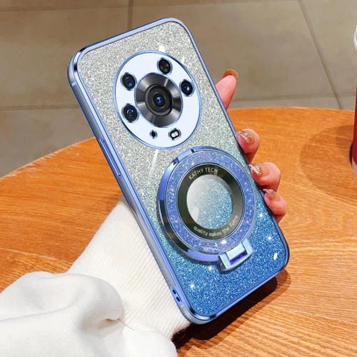 Funda de TPU para Honor Magic3 Pro con Soporte Redondo y Purpurina Degradada (Azul Sierra)