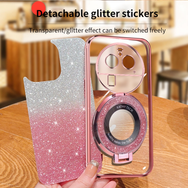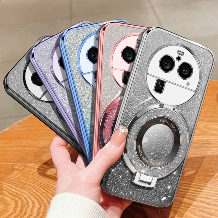 Funda de Teléfono de TPU con Soporte Redondo y Purpurina Degradada Plateada para Oppo Find X6 Pro (Negra)