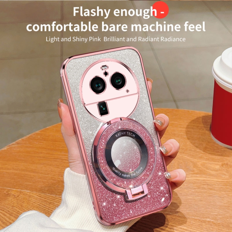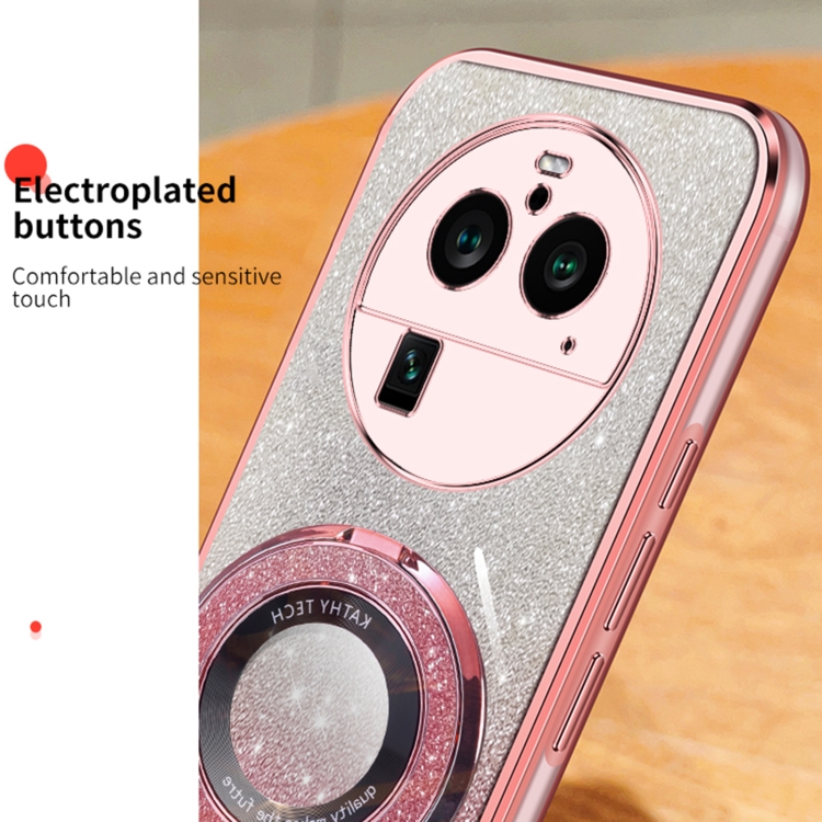 Funda de Teléfono de TPU con Soporte Redondo y Purpurina Degradada Plateada para Oppo Find X6 Pro (Rosa)