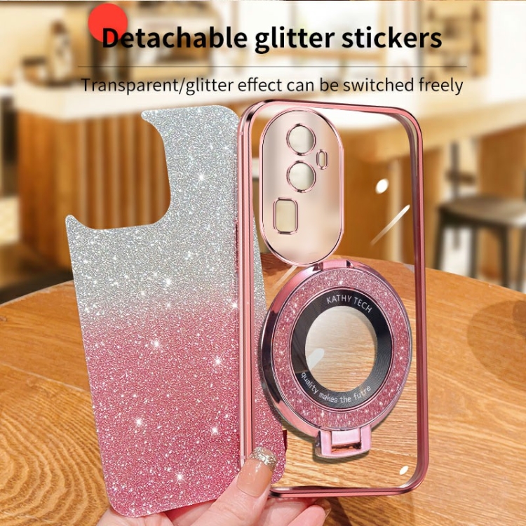 Funda de Teléfono de TPU con Soporte Redondo y Purpurina Degradada Plateada para Oppo Reno10 Pro+ (Plateada)