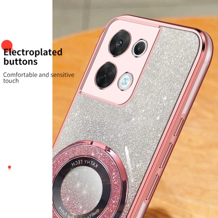 Funda de Teléfono de TPU con Soporte Redondo y Purpurina Degradada Plateada para Oppo Reno8 (Rosa)