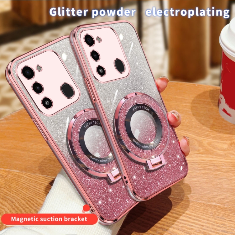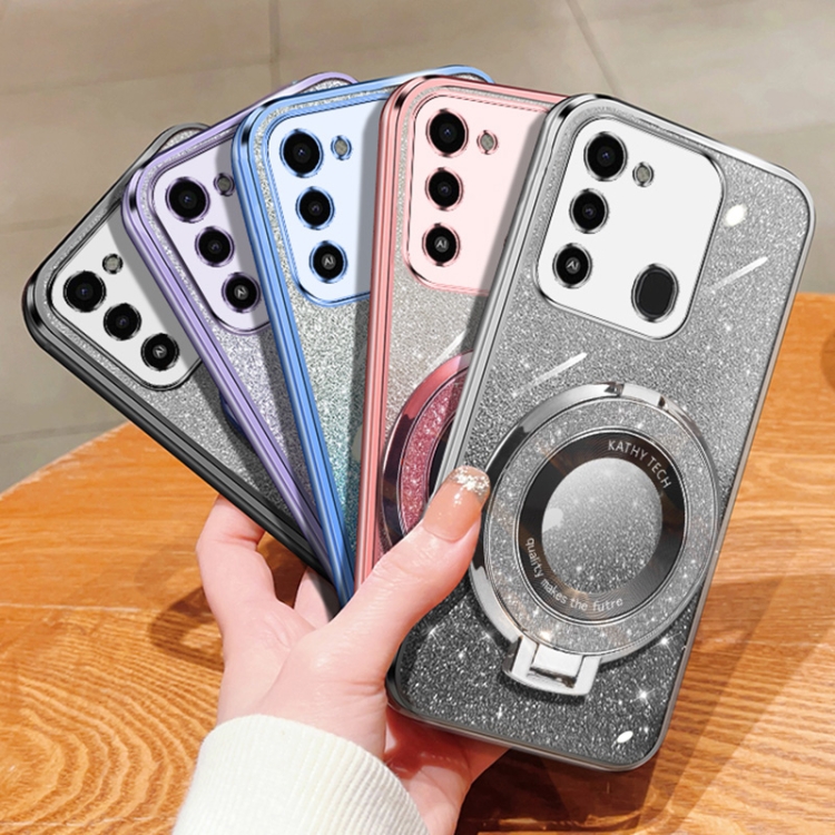 Funda de Teléfono TPU Tecno Spark Go 2022 con Soporte Redondo y Purpurina (Negro)