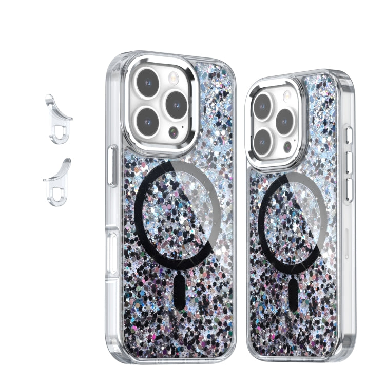 Funda de Teléfono TPU Magnética Magsafe con Purpurina Epoxi para iPhone 16 Pro (Negra)