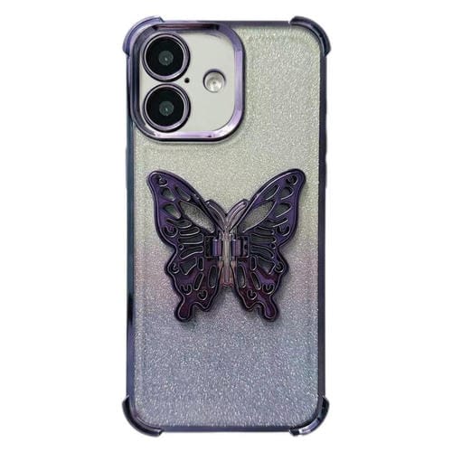 Funda de TPU con diseño de mariposa 3D brillante y galvanizada para iPhone 17, a prueba de golpes y con cuatro esquinas (morado degradado)
