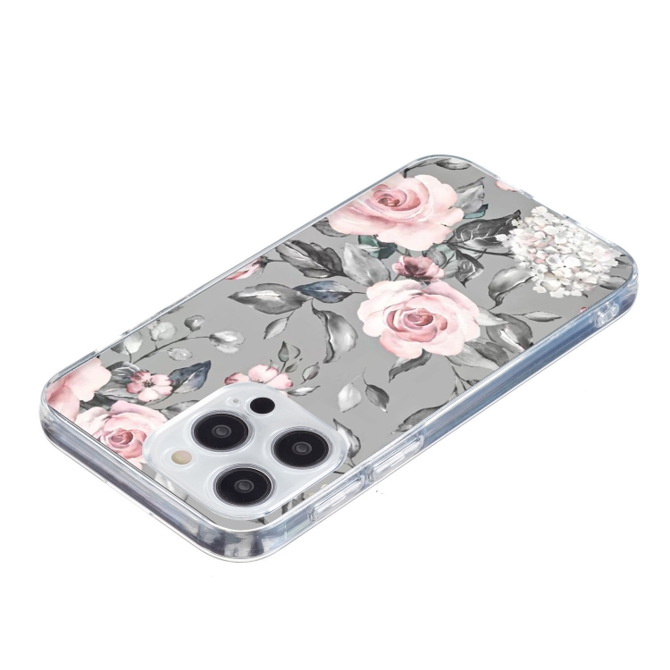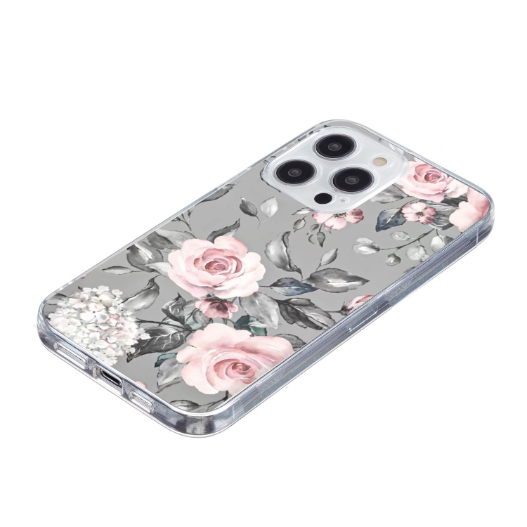 Funda TPU iPhone 16 Pro Max Patrón Pintura Colorida (Flores) (Gris)