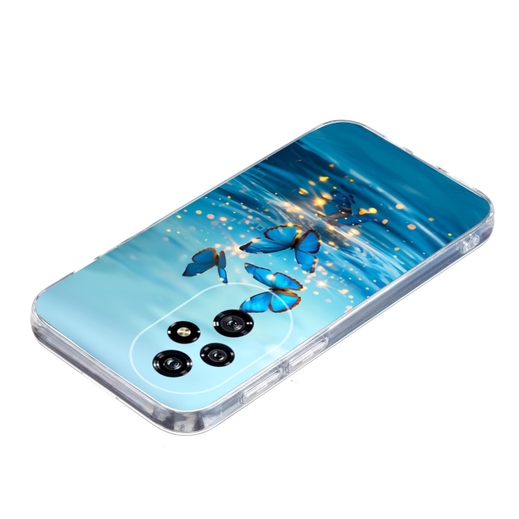 Funda TPU Honor 200 con Patrón de Pintura Colorida y Mariposas Azules