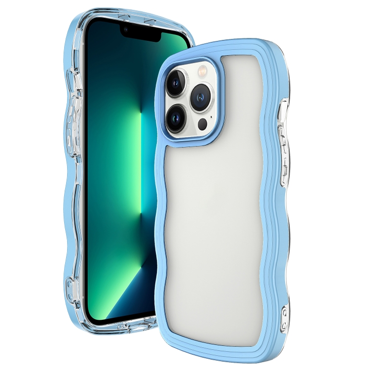 Funda TPU Transparente con Ondas Color Caramelo para iPhone 16 Pro (Azul)