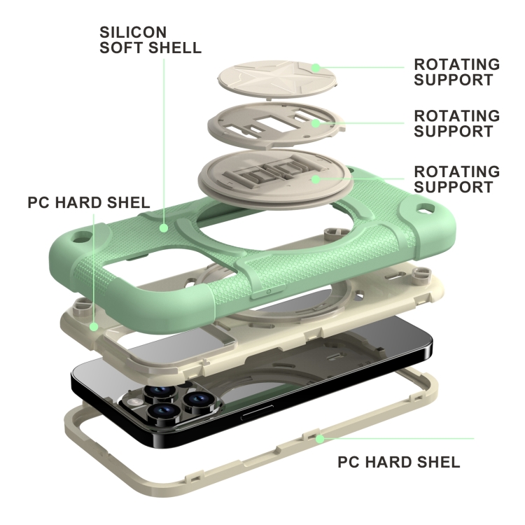 1. Material: hecho de cubiertas de policarbonato duro de 2 capas y una cubierta exterior de silicona suave, proporciona una protección integral.