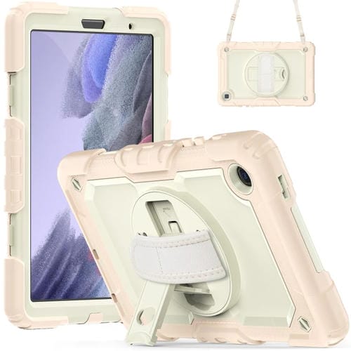 Funda híbrida de silicona para Tablet Samsung Galaxy Tab A7 Lite T220 con correa para el hombro (Beige y Oro Rosa)