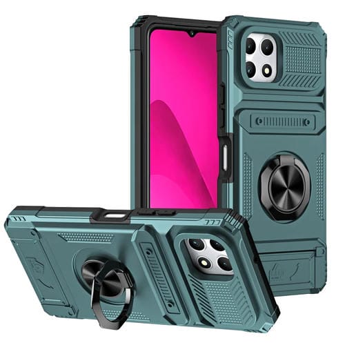Funda Híbrida TPU con Tarjetero y Soporte Anillo Metal para T-Mobile Revvl 7 (Verde)