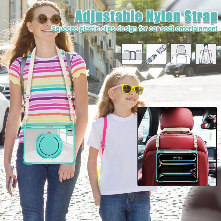 Funda Híbrida TPU para iPad Pro 11 (2024) con Asa Giratoria y Anillo (Verde Claro)