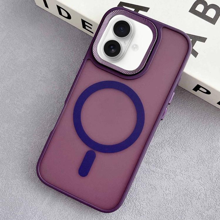Funda Híbrida TPU y PC para iPhone 16 Magsafe con Marco de Lente de Diamante (Morado)