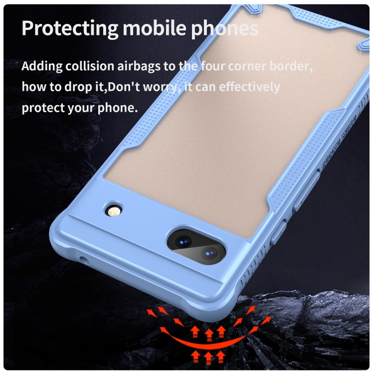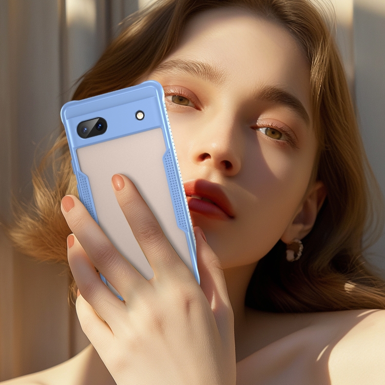 Funda híbrida TPU y PC para Google Pixel 6A con protección glaseada (Azul)