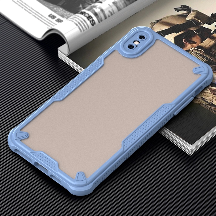 Funda híbrida TPU y PC para iPhone Xs Max Protección Glaseada (Azul)