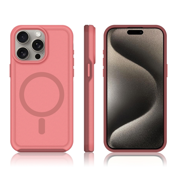 Funda híbrida TPU y PC para iPhone 12 Pro con Protección Magsafe a prueba de golpes (Rosa Oscuro y Granate)
