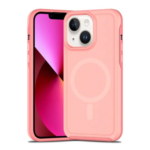 Funda híbrida TPU y PC con Protección Magsafe para iPhone 13 (Rosa Claro y Rojo Coral)