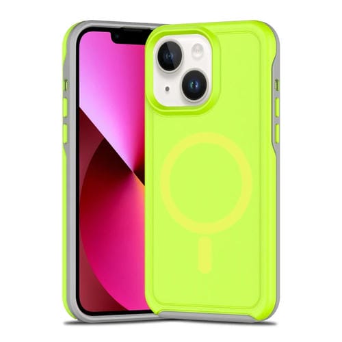 Funda híbrida TPU y PC para iPhone 13 con protección Magsafe y antigolpes (Verde Fluorescente y Gris)