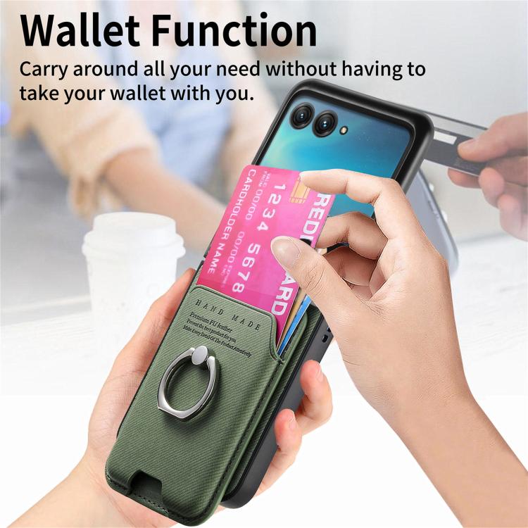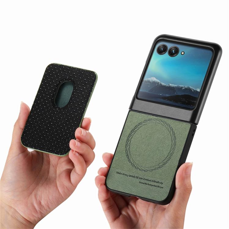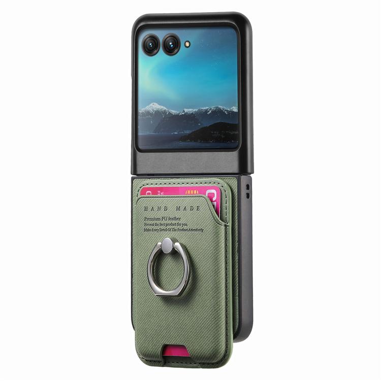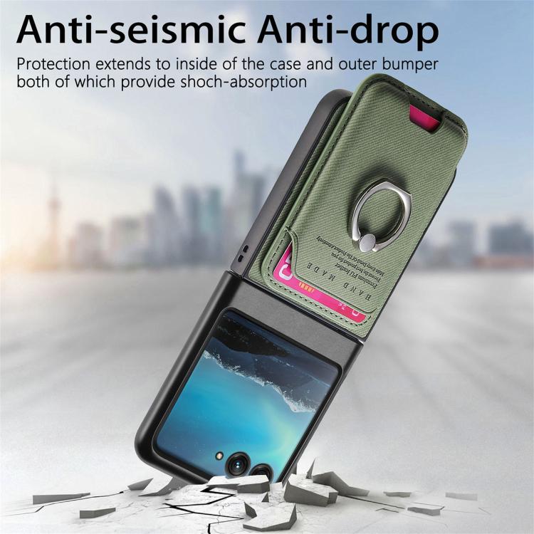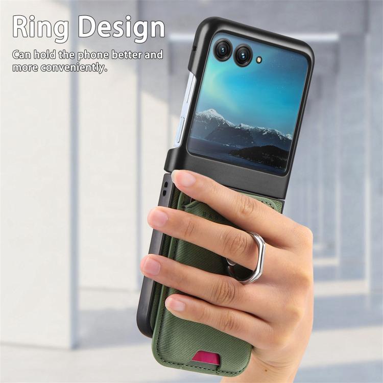Funda magnética con anillo para Motorola Moto Razr 40 Ultra, de tela sarga, con ranuras para tarjetas (verde)