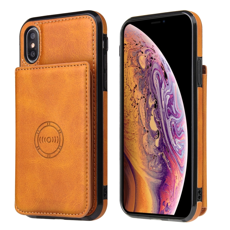Funda Magnética para iPhone X / Xs Textura de Becerro (Marrón)
