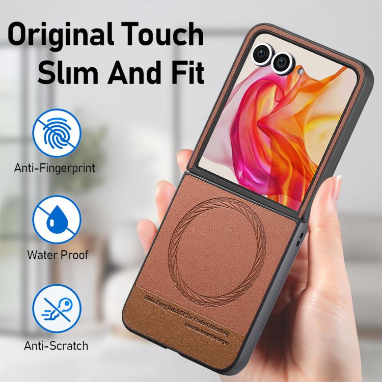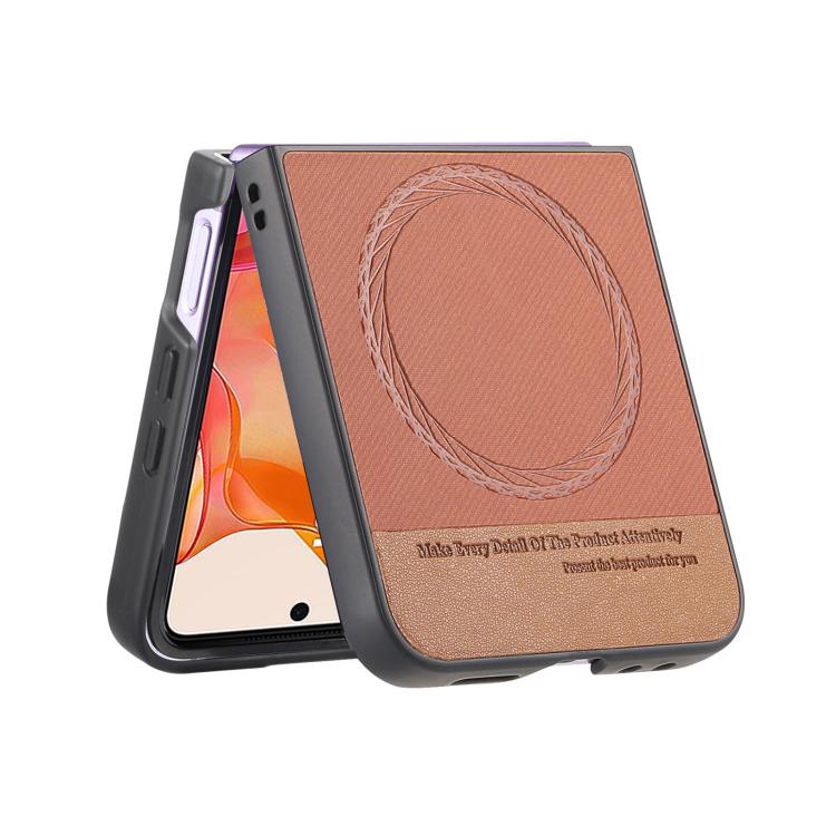 Funda Magnética de Piel de Sarga para Motorola Razr 50 Ultra (Marrón)