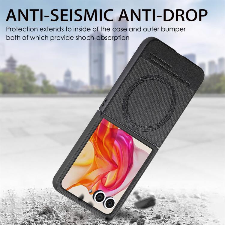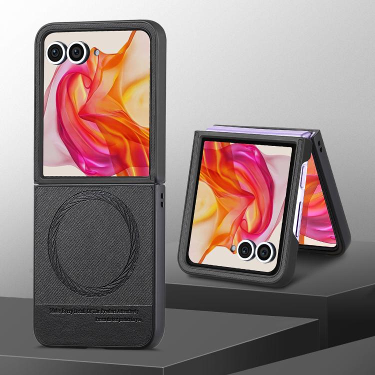 Funda Magnética de Piel y Sarga para Motorola Razr 50 (Negra)