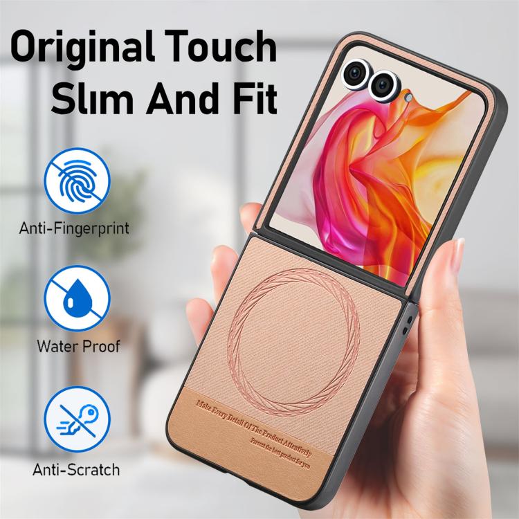 Funda Magnética de Piel y Sarga para Motorola Razr 50 (Rosa)