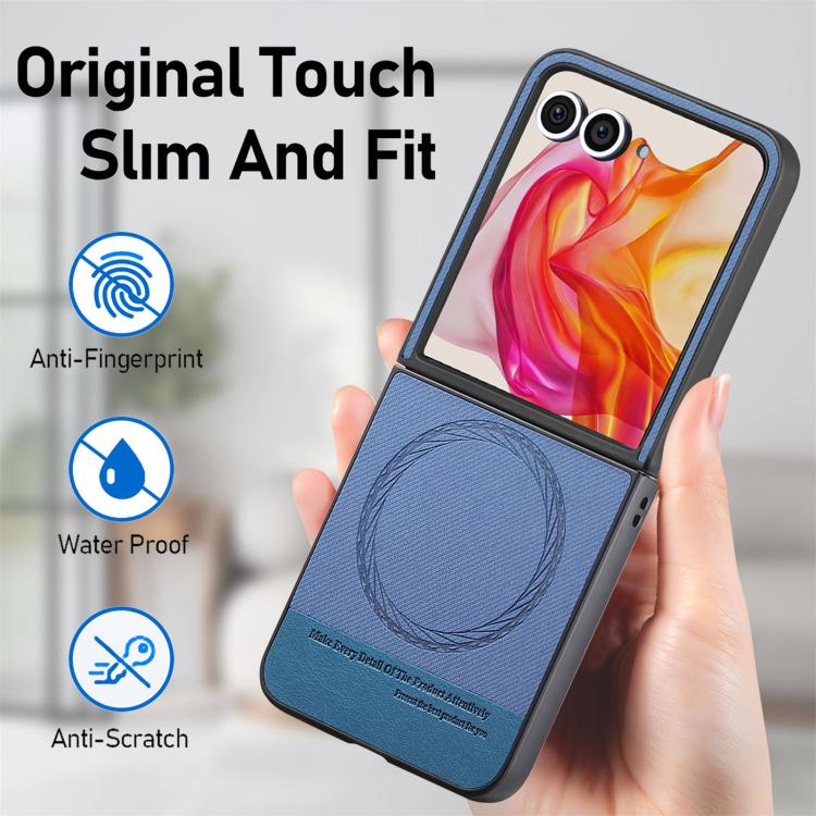 Funda Magnética de Piel y Sarga para Motorola Razr 50 Ultra (Azul)