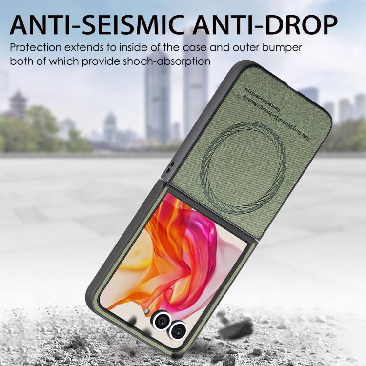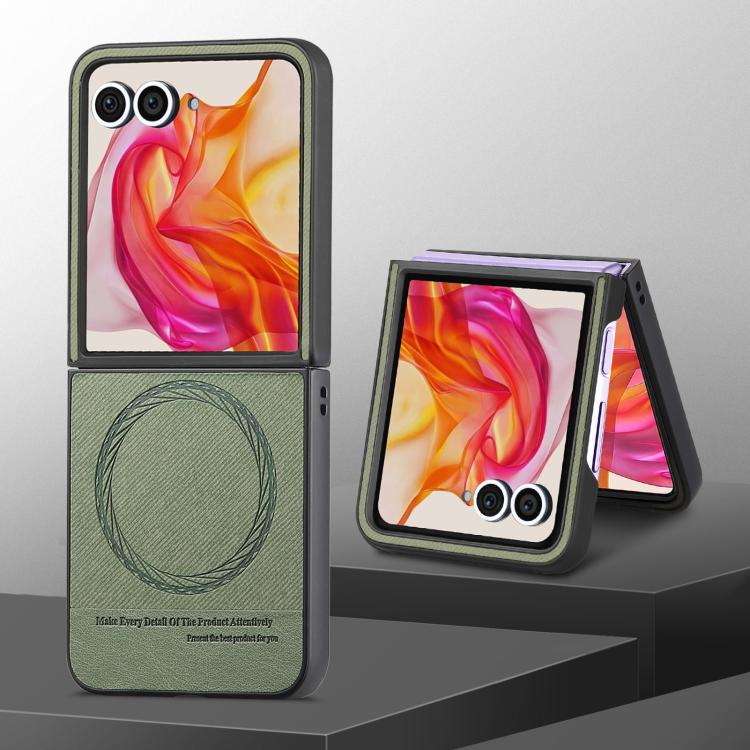 Funda Magnética de Piel y Sarga para Motorola Razr 50 Ultra (Verde)