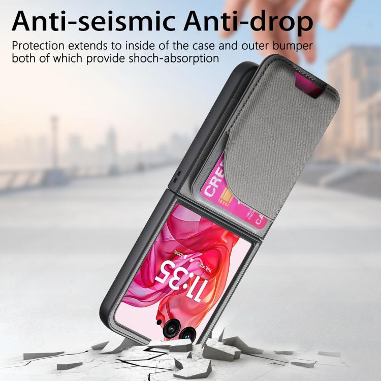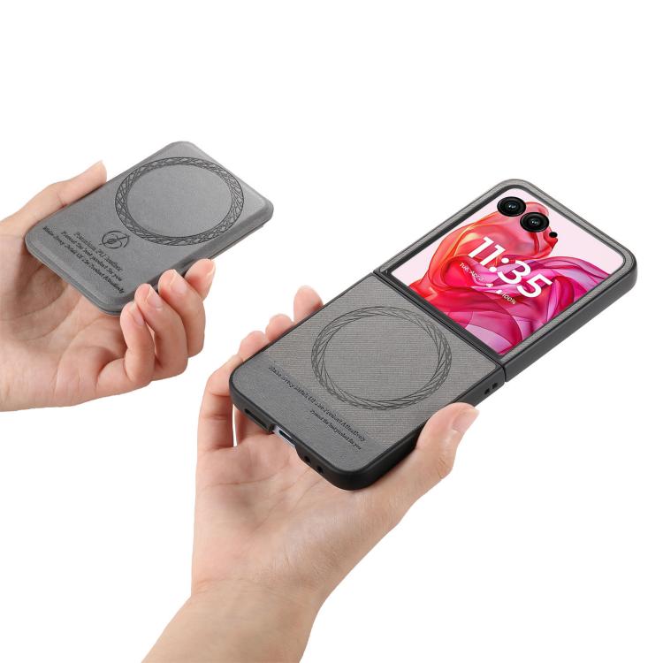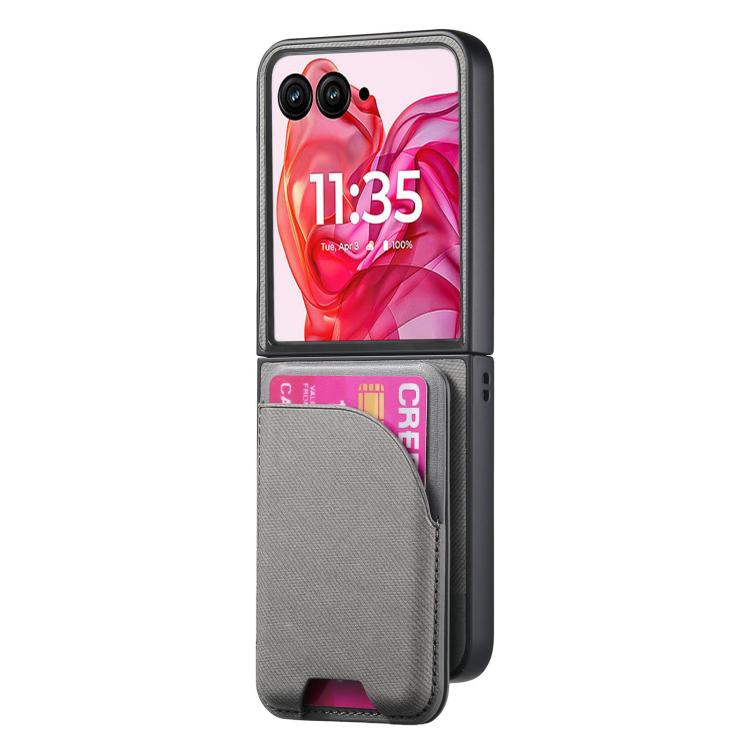 Funda Magnética Motorola Razr 40 Ultra de Piel y Sarga con Parte Trasera de Cuero y Tarjetero (Gris)