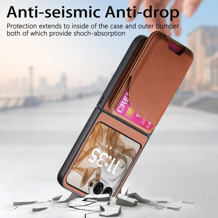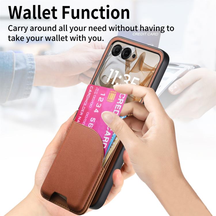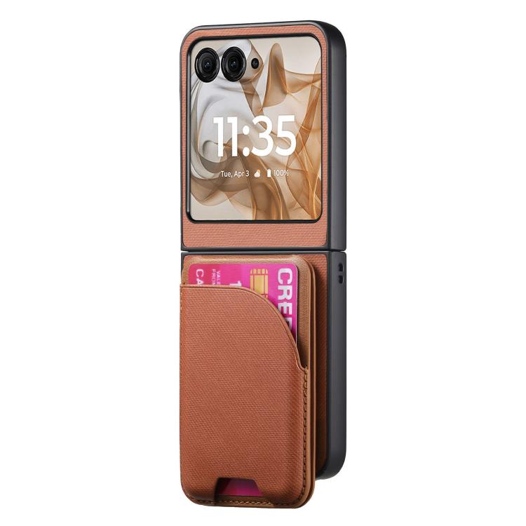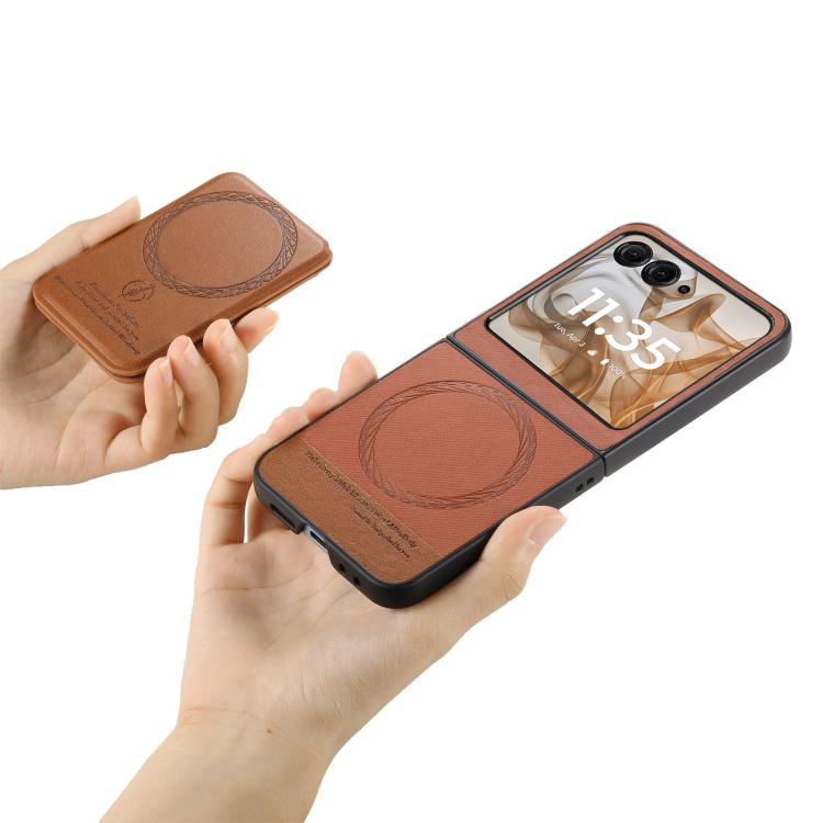 Funda Magnética Motorola Razr 50 de Piel y Sarga con Parte Trasera de Cuero y Tarjetero (Marrón)