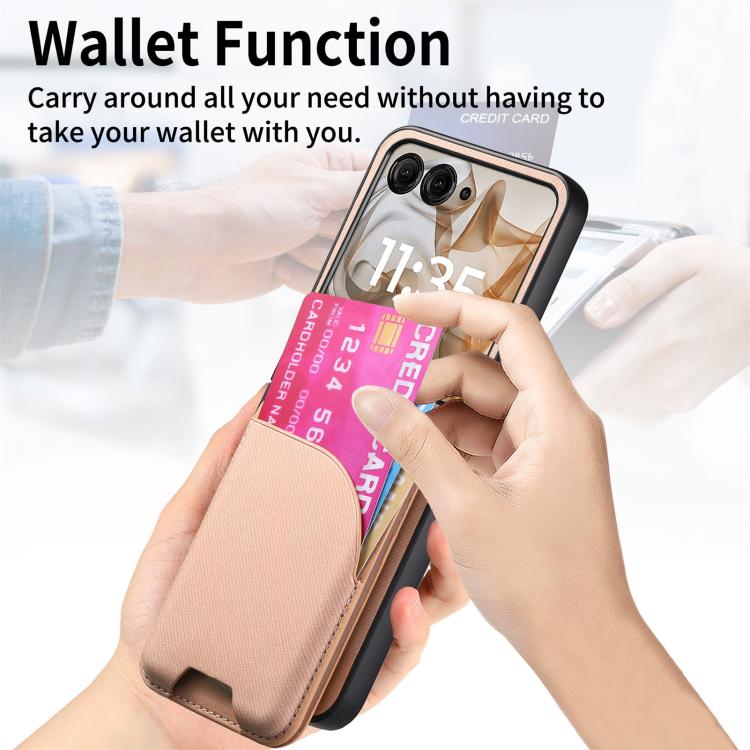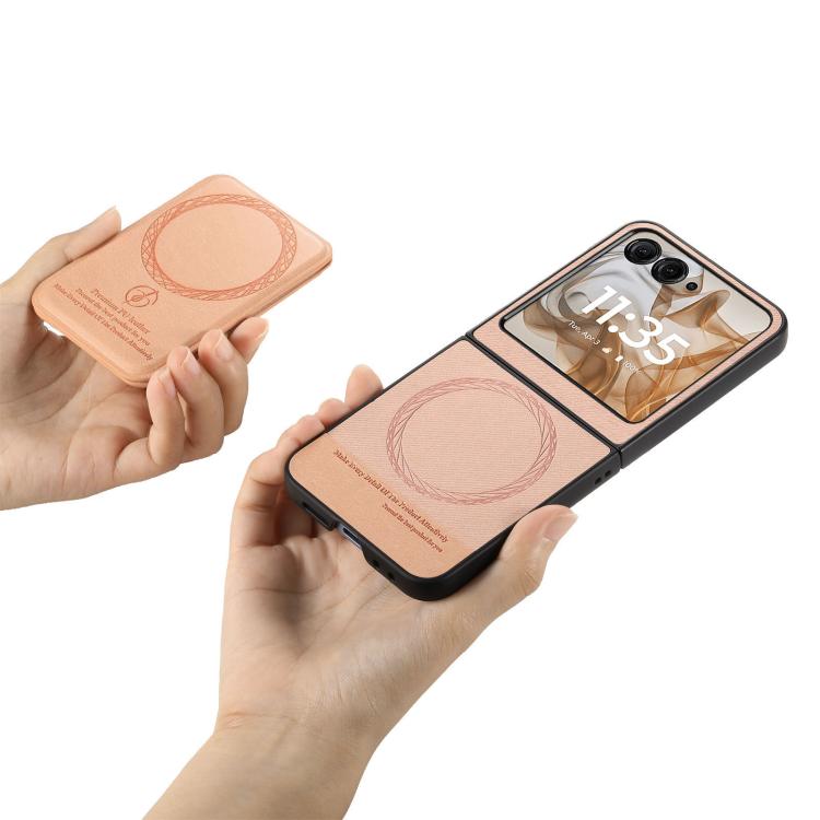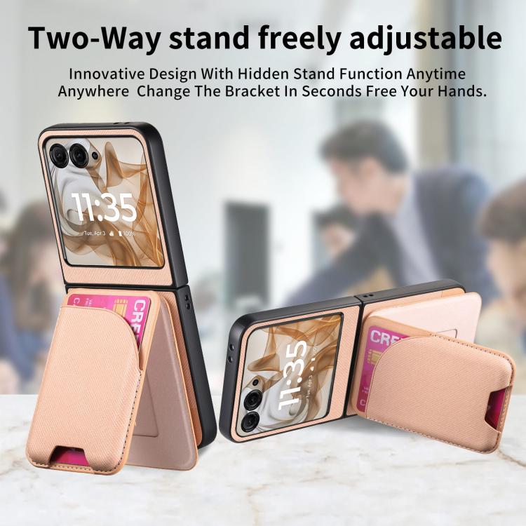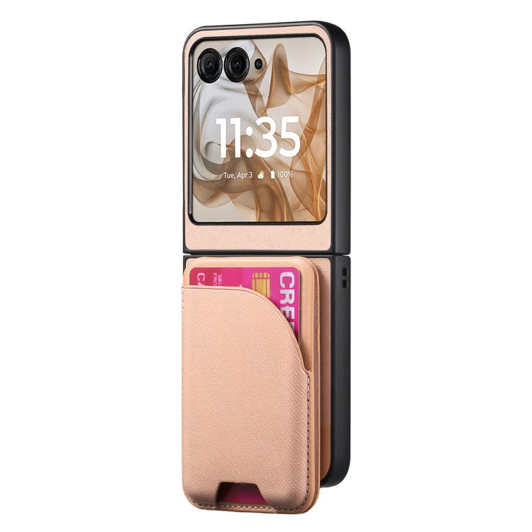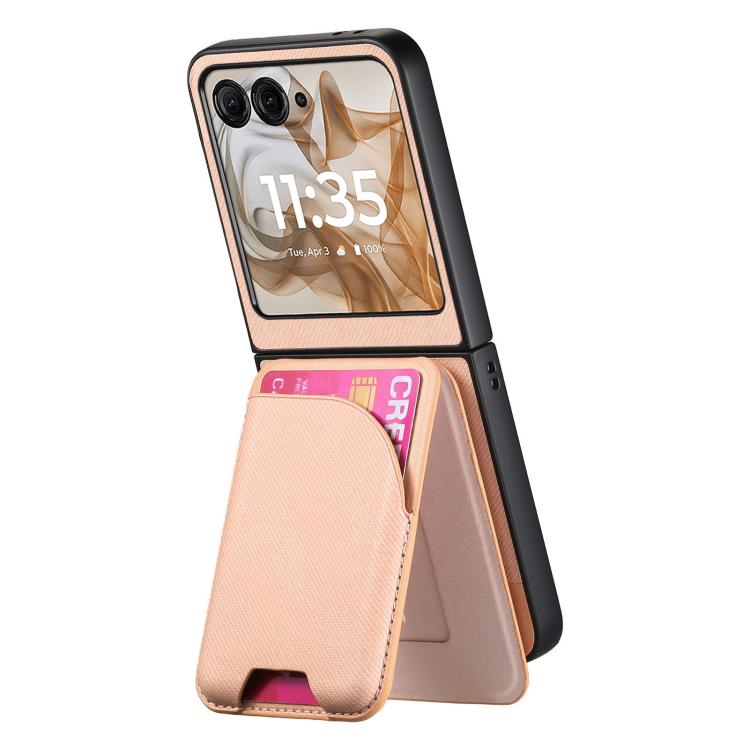 Funda Magnética Motorola Razr 50 de Piel y Sarga con Tarjetero (Rosa)