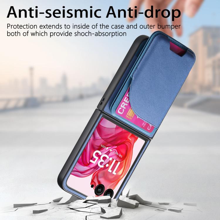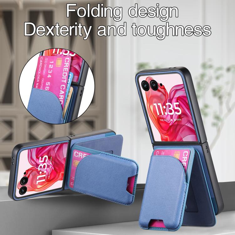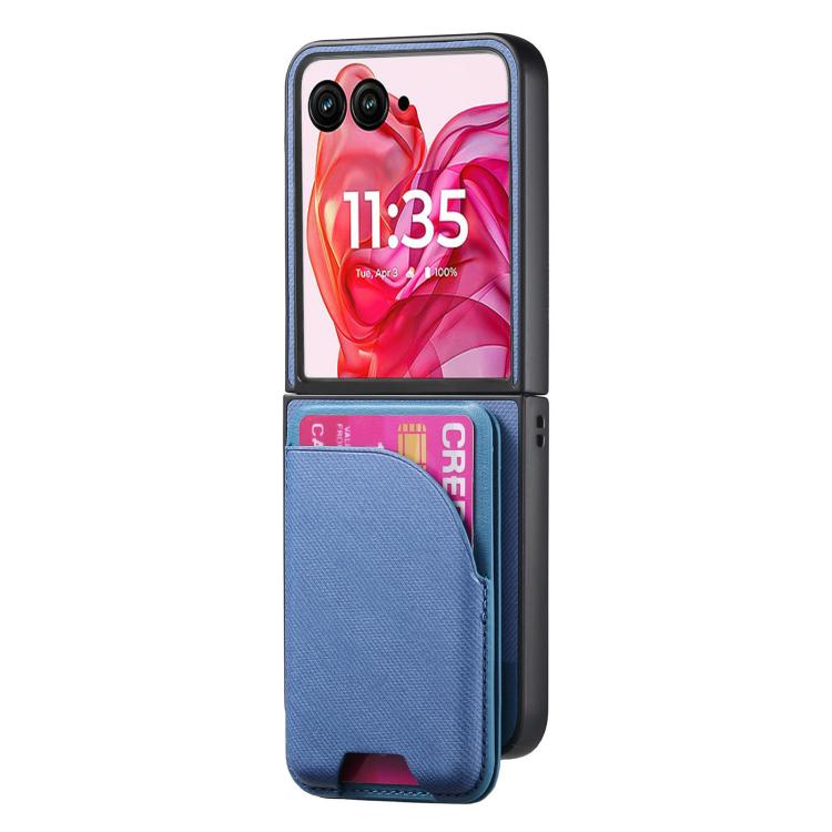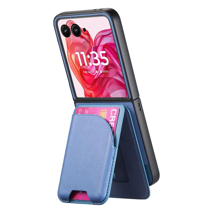 Funda Magnética Motorola Razr 50 Ultra de Tela Sarga y Cuero con Tarjetero (Azul)