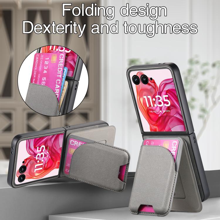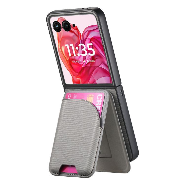 Funda Magnética Motorola Razr 50 Ultra de Tela Sarga y Cuero con Tarjetero (Gris)