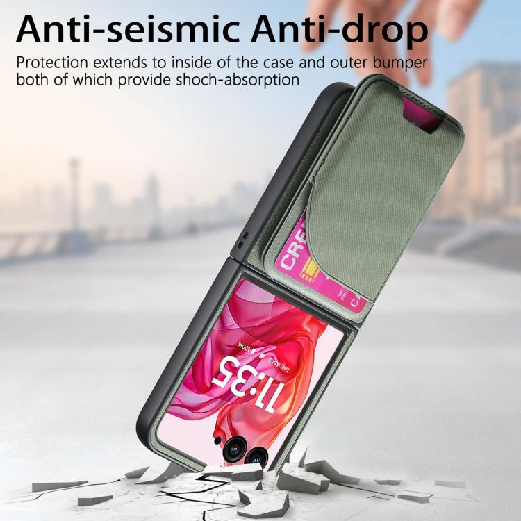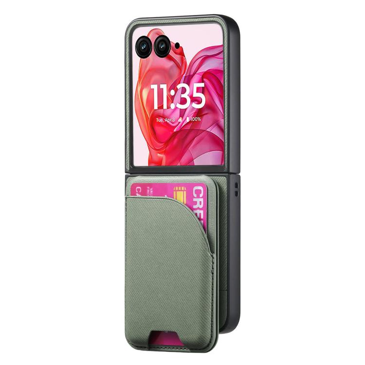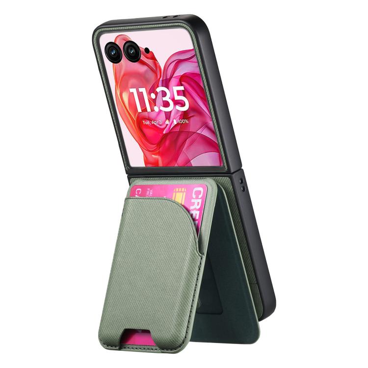 Funda Magnética Motorola Razr 50 Ultra Tela Sarga y Cuero con Tarjetero (Verde)