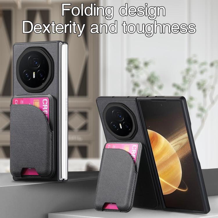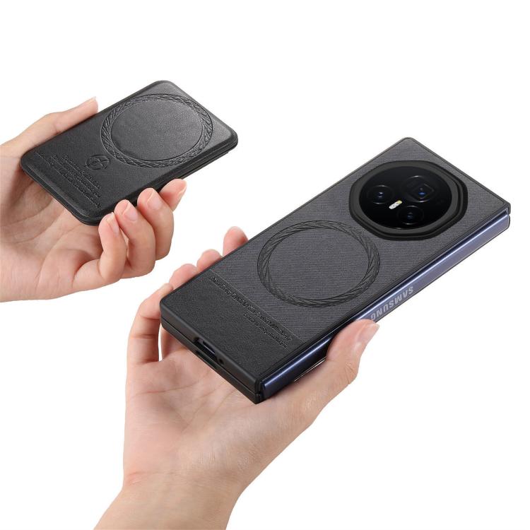 Funda Magnética para Honor Magic V3 con Tapa Trasera de Cuero y Sarga (Negro)