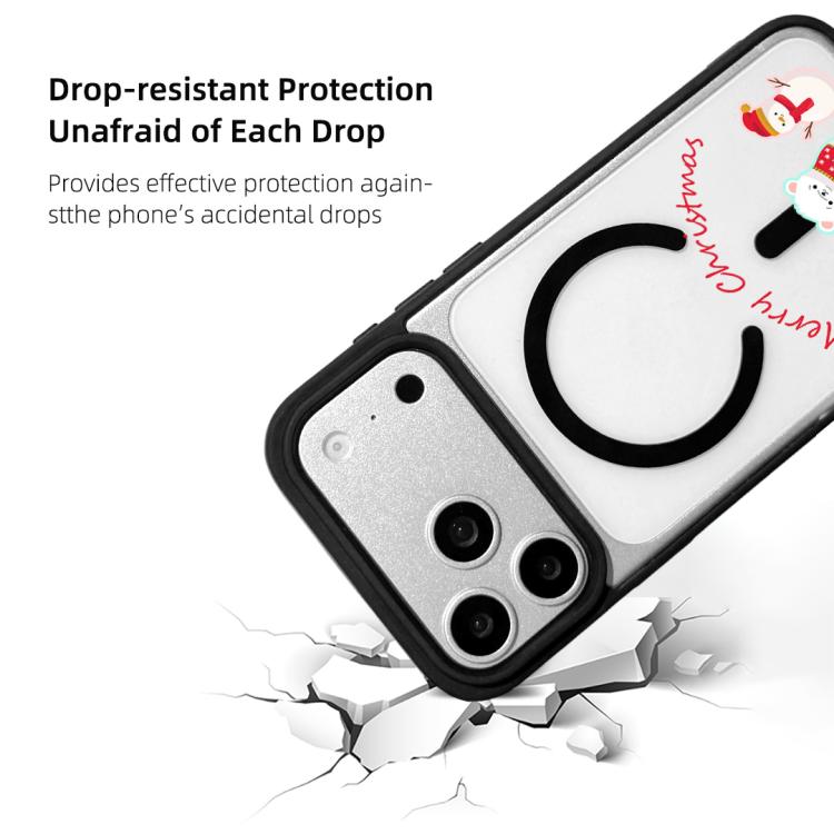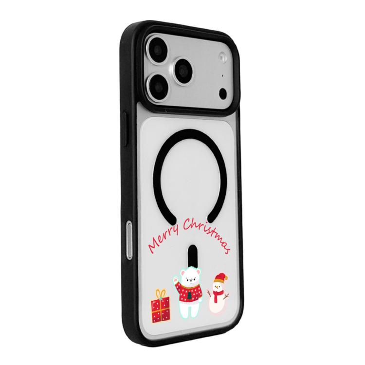 Funda magnética resistente con borde negro pintado para iPhone 17 Pro Max de la serie navideña (Oso polar y muñeco de nieve)