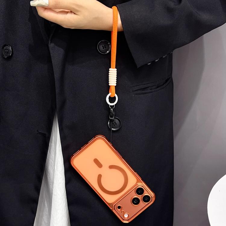 Funda MagSafe de TPU electrochapado mate con ventana grande para iPhone 17 Pro Max y correa de mano (morado)