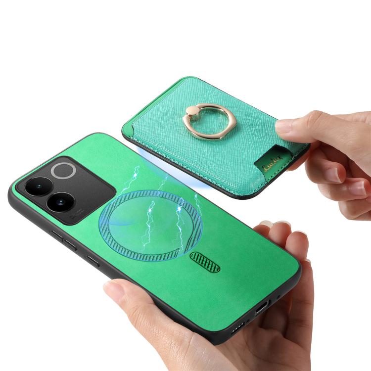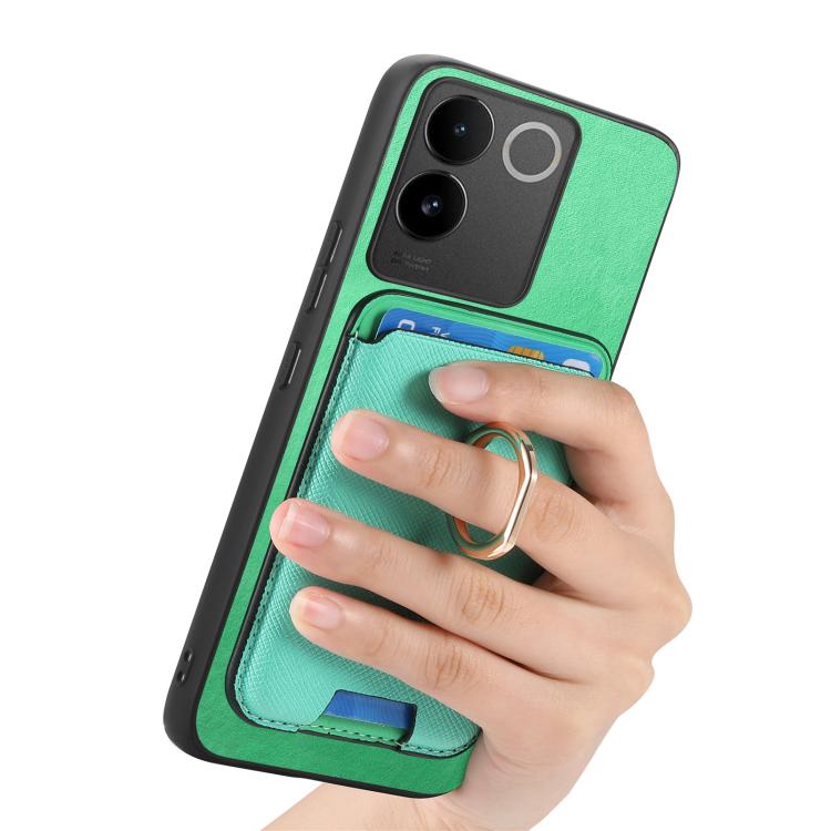 Funda Magsafe para Vivo Y300+ con Anillo de Cuero Retro Cruzado y Ranuras para Tarjetas (Verde)