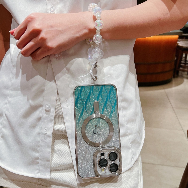 Funda para iPhone 11 TPU con Purpurina Degradada Hojas de Amor Fibra de Carbono Magsafe (Verde)