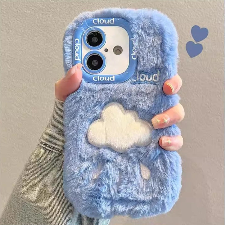Funda para iPhone 16 Bordado de Felpa Cobertura Total (Nube Azul y Blanca)