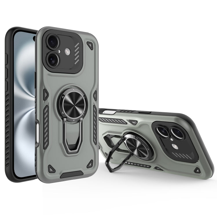 Funda para iPhone 16 con Soporte Giratorio de Metal y Carcasa Magnética TPU y PC (Gris Carbón)
